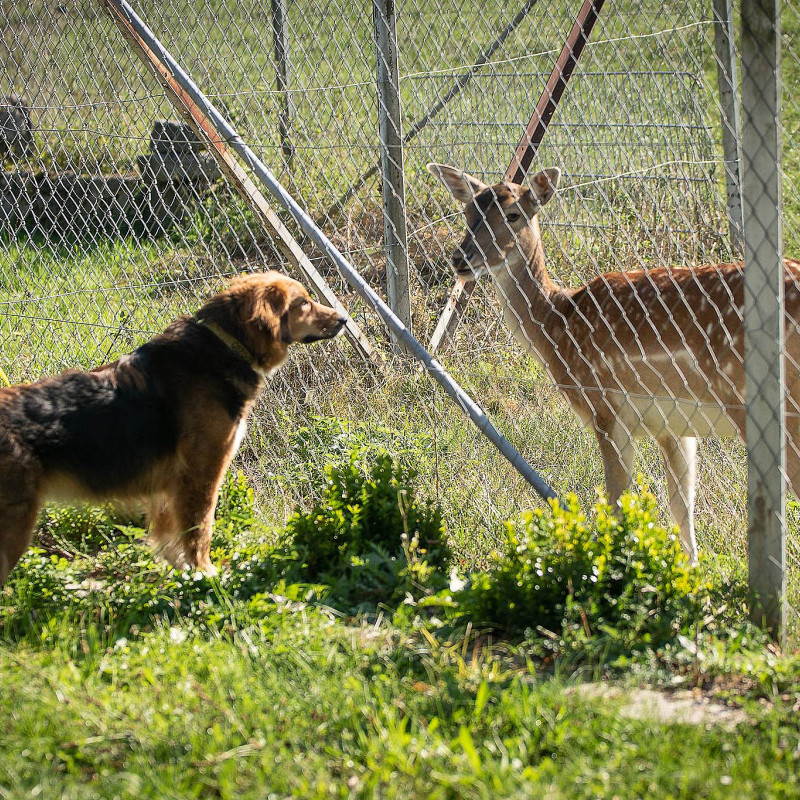 Sie führt aktuell zwei sehr unterschiedliche Hunde – eine rumänische Bracke und einen kroatischen Hütehund – beide mit ausgeprägtem Jagdtrieb.